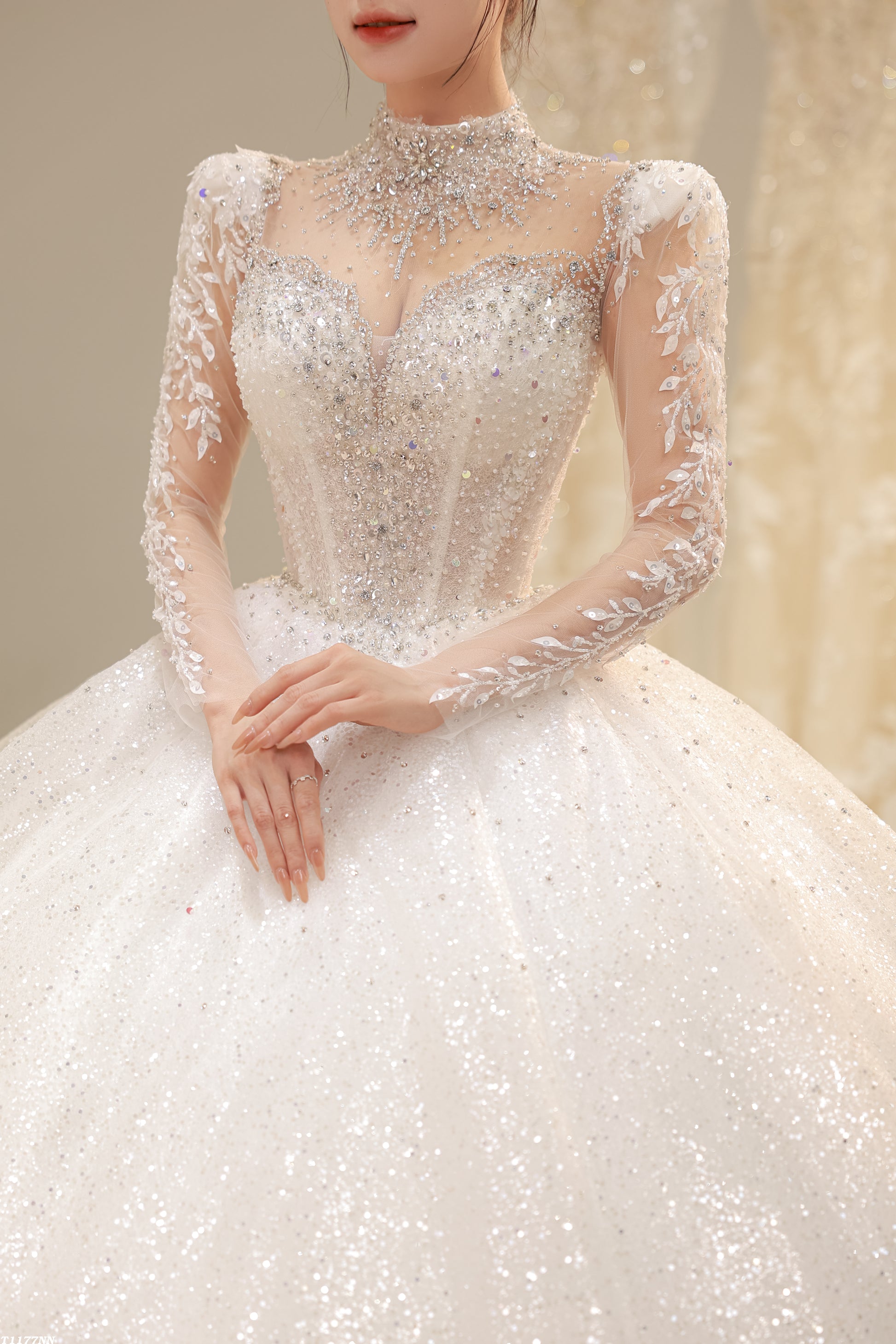 β¨ Intricate beading decorates the bodice for a radiant touch