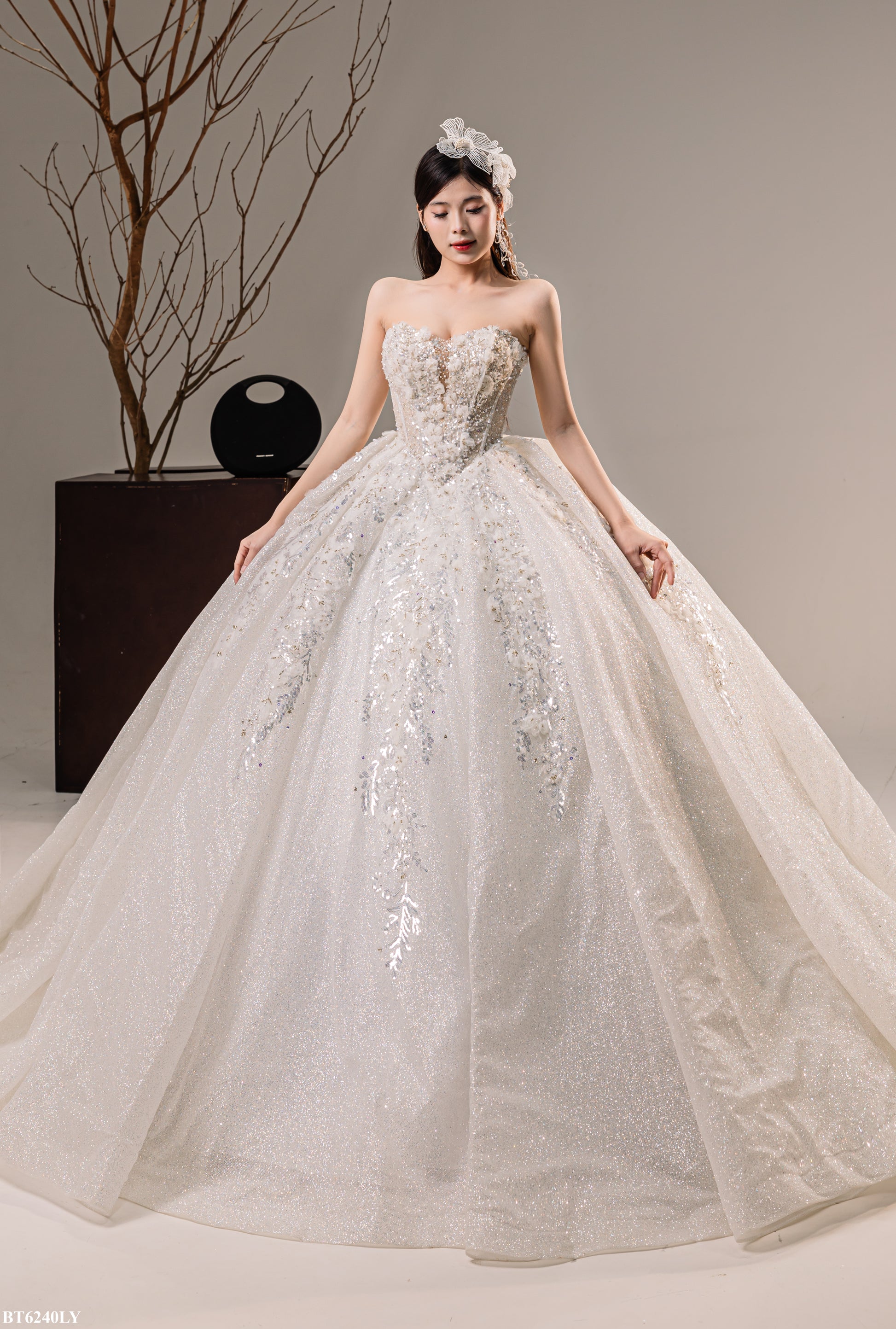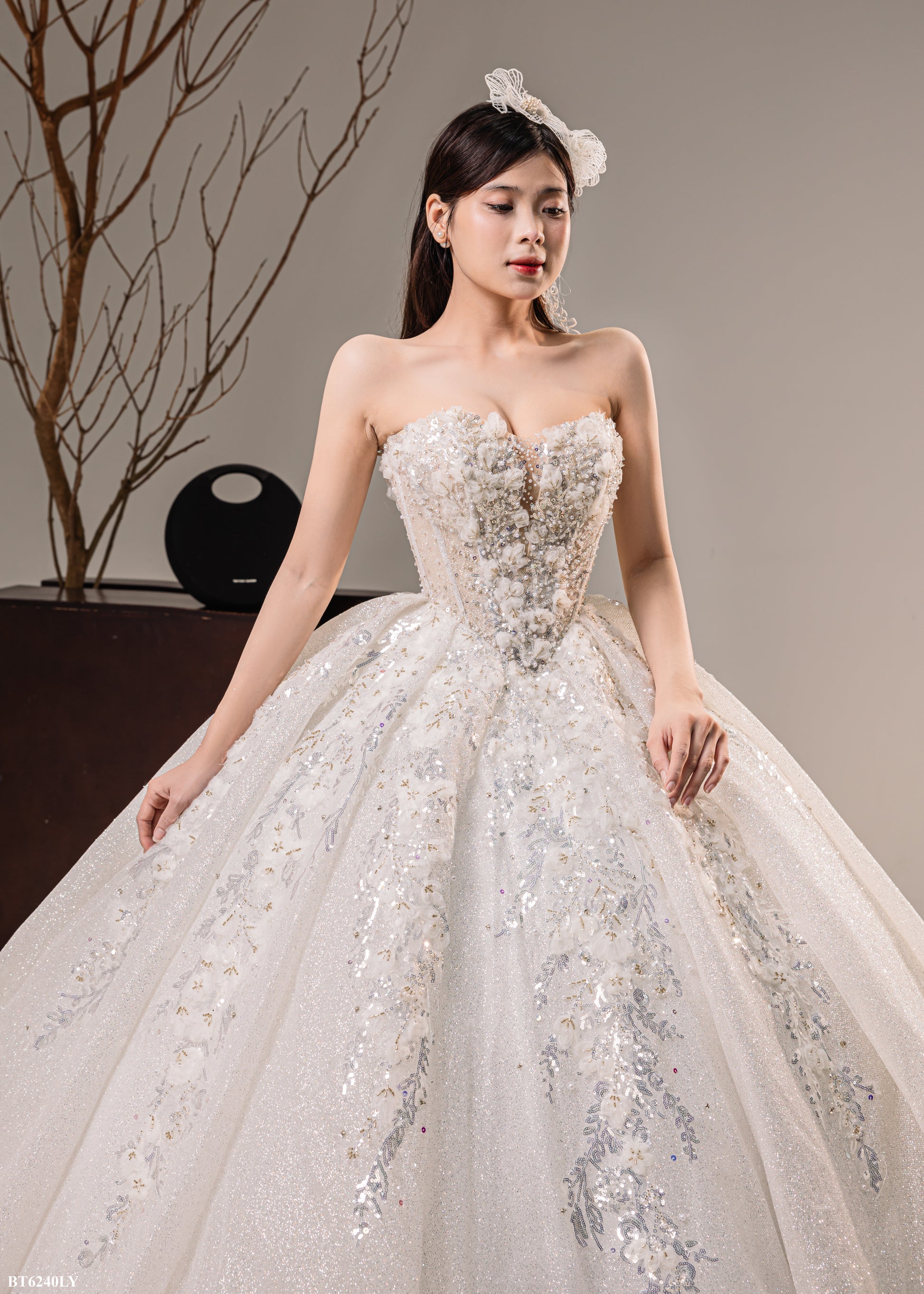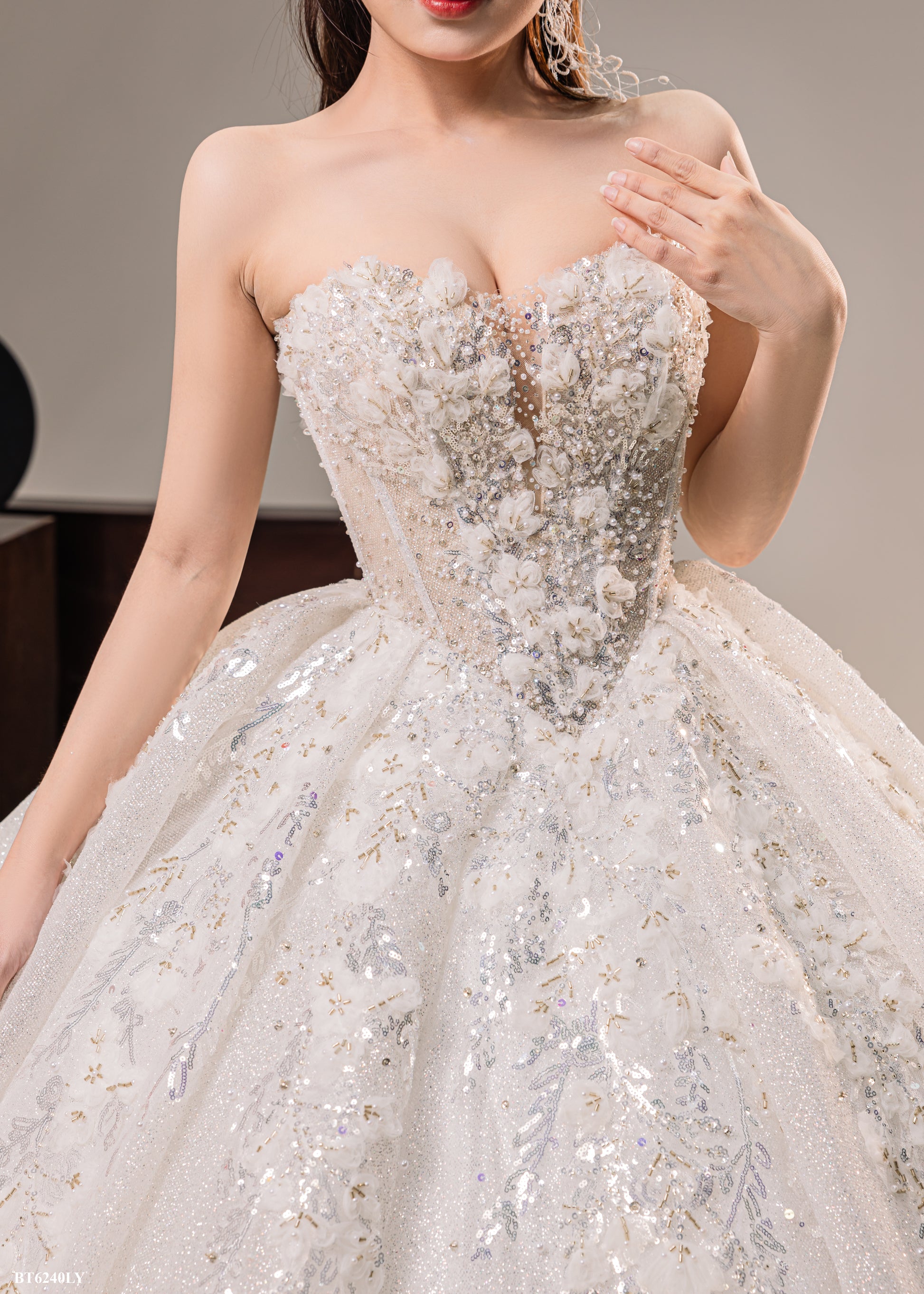 ๐ Dripping Floral Details: Delicate flower embellishments cascade from the waist, drawing the eye to a beautifully defined and smaller waistline