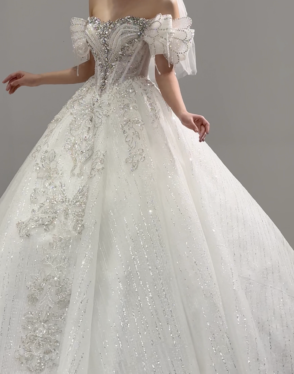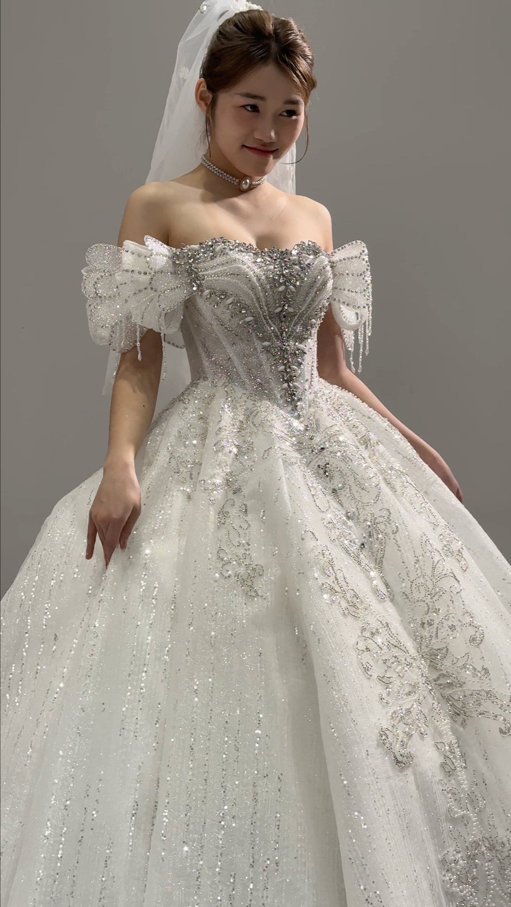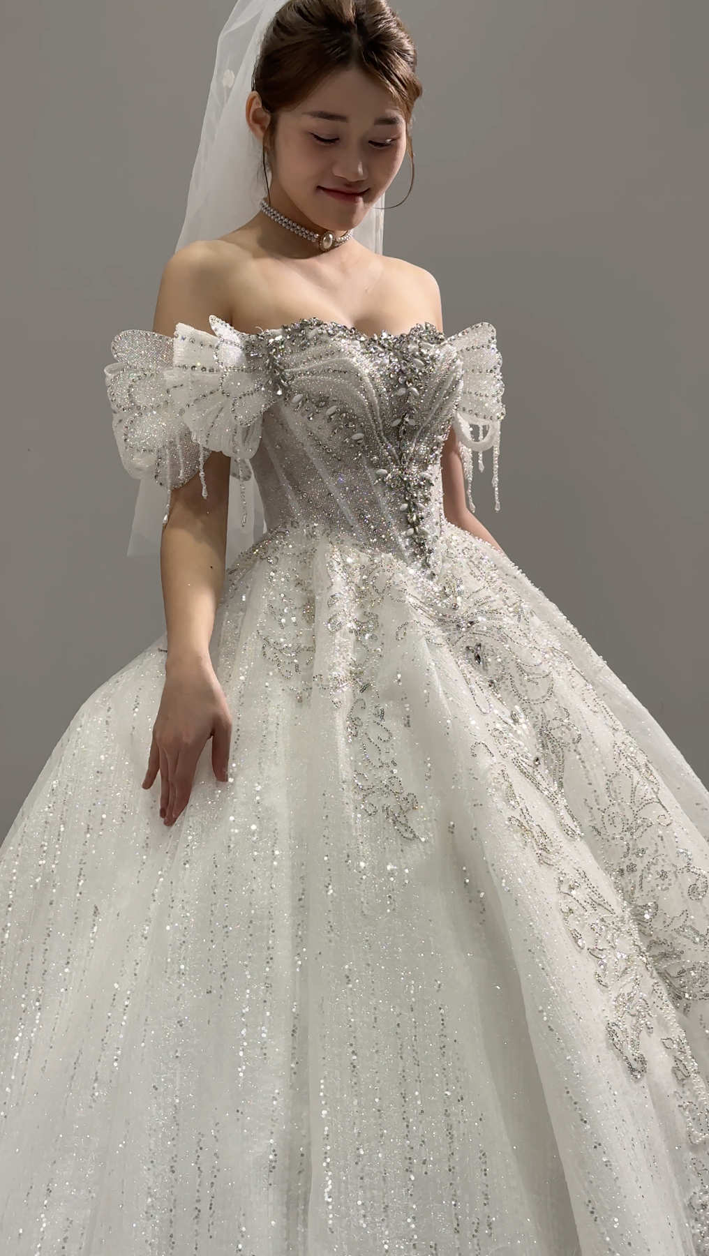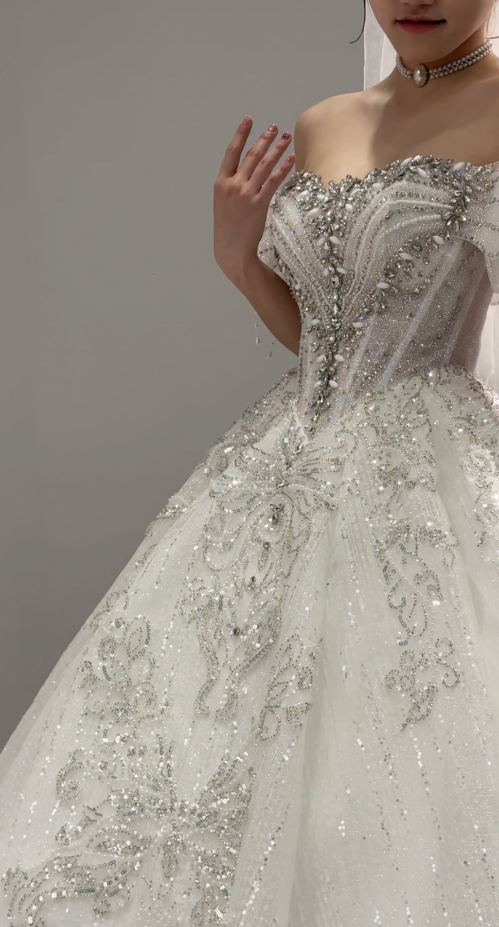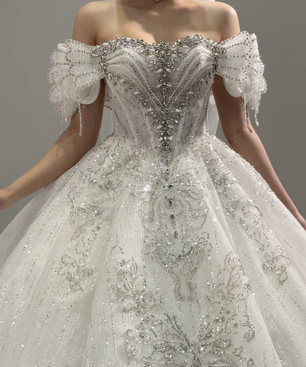 ✨ Sparkling Bodice: Intricate beadwork creates a luxurious, radiant design that mesmerises