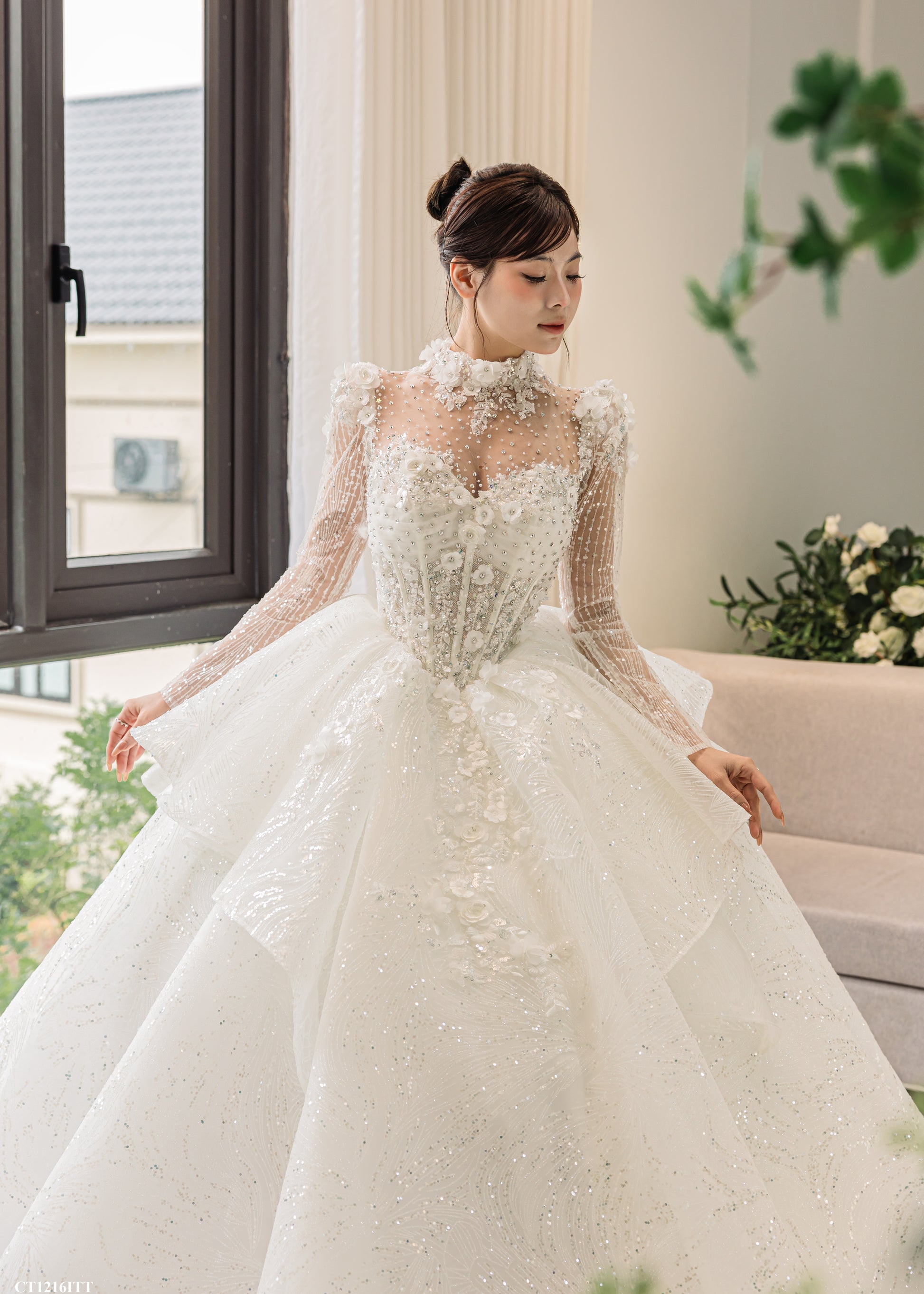 π Layered tulle volume on the sides for a regal, sculpted look