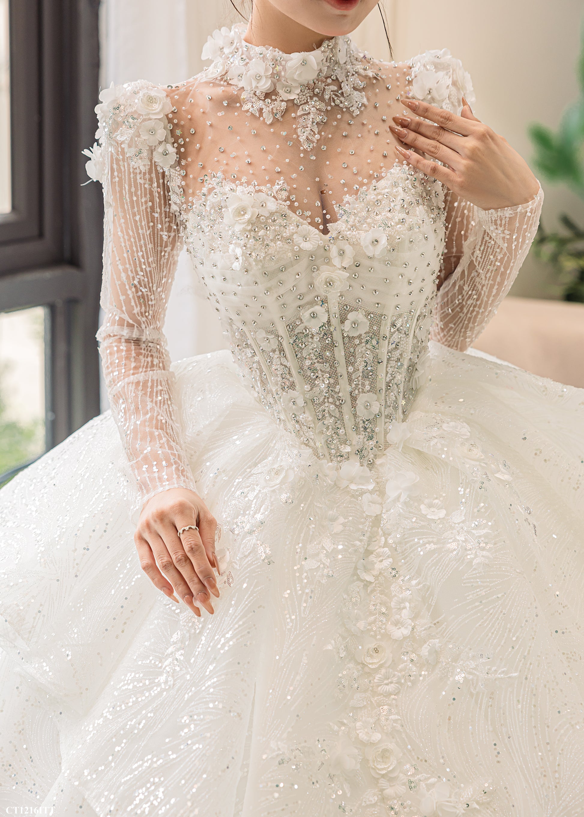 π Sheer illusion neckline and sleeves with soft netting