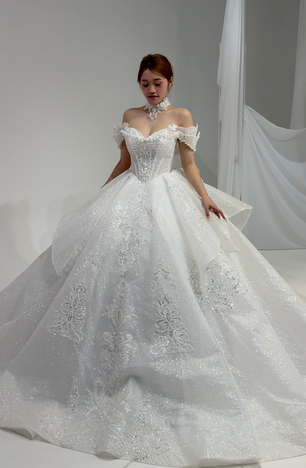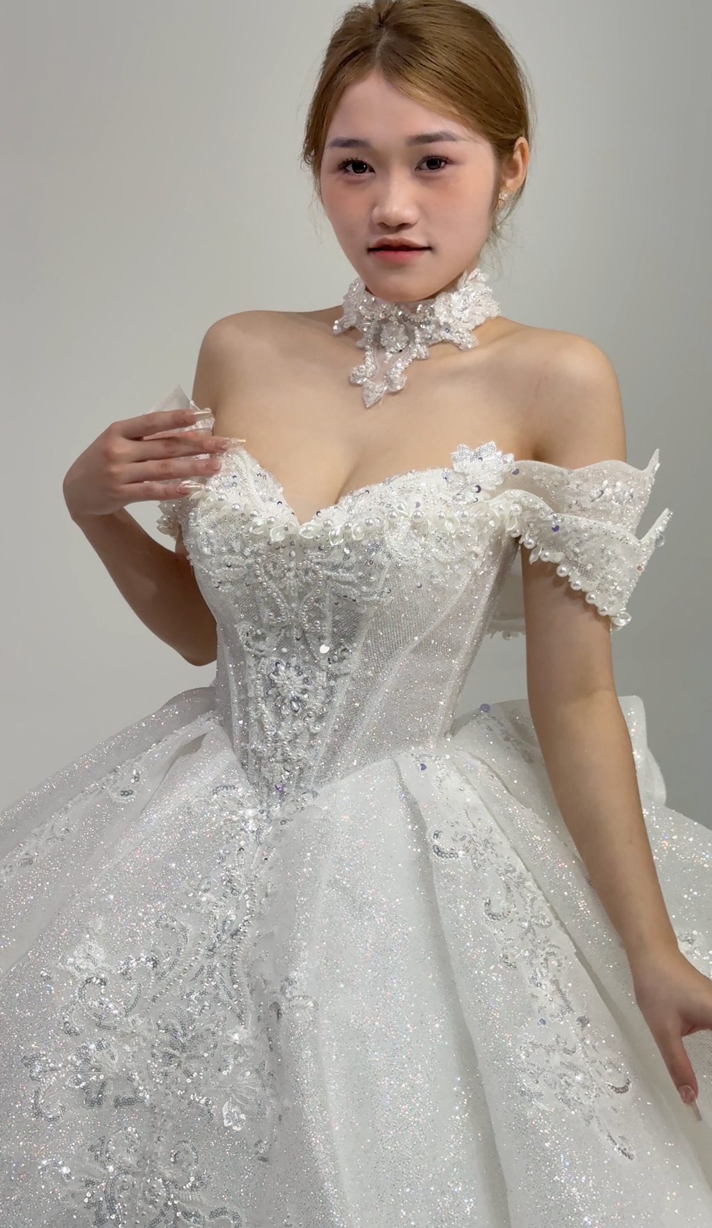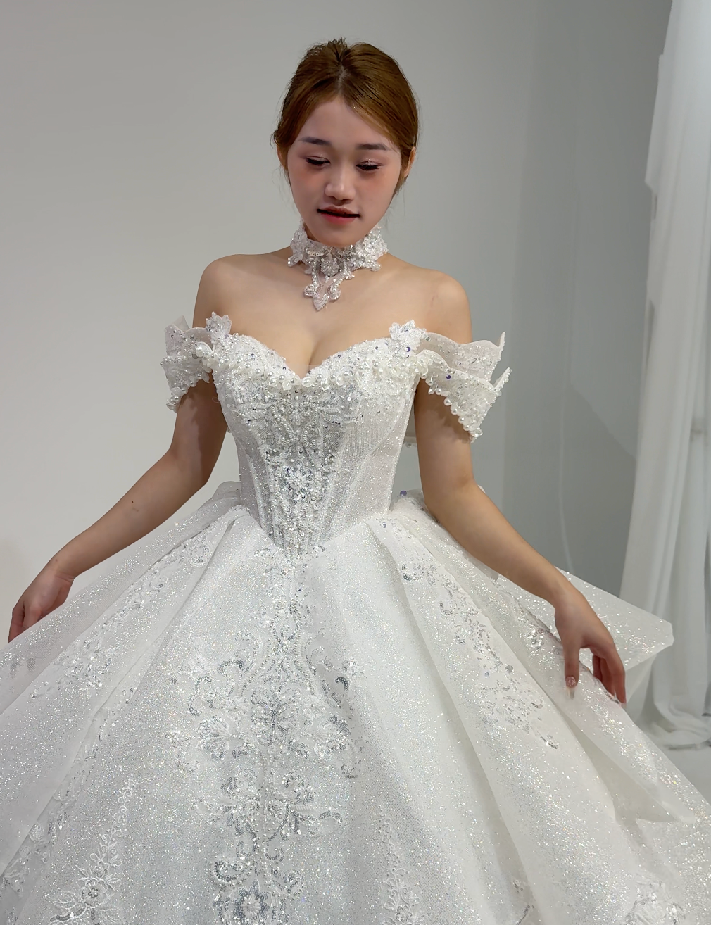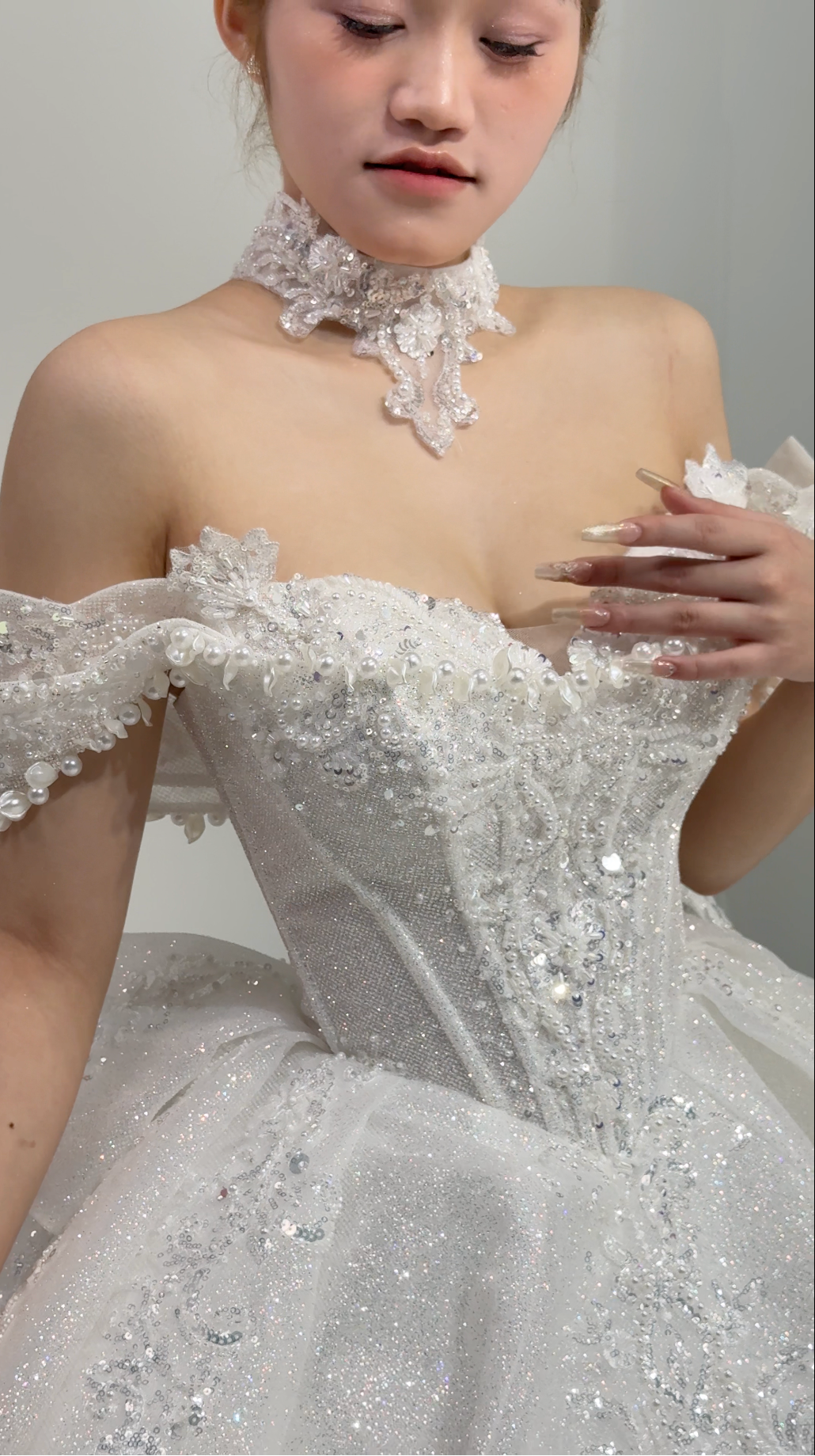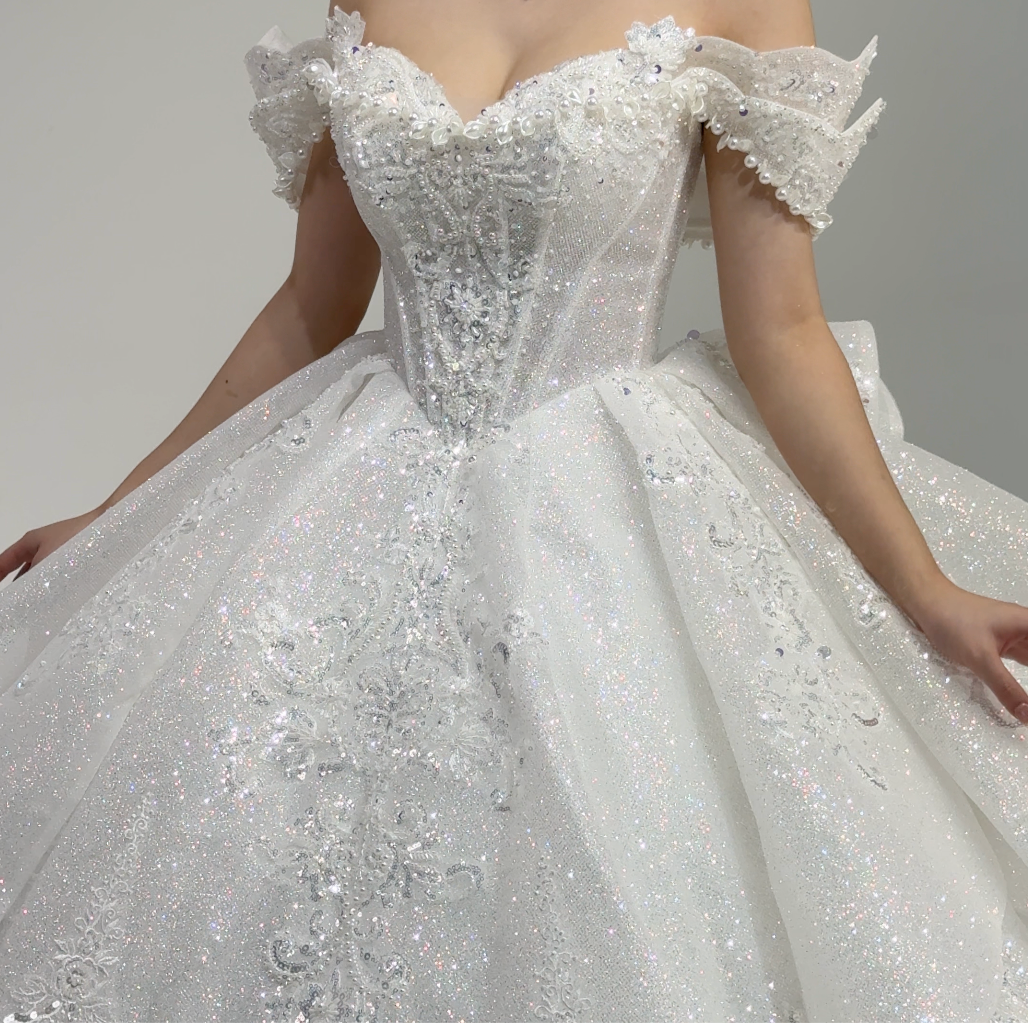 β¨ Sparkling Bodice: Intricate beadwork catches the light like morning dew on blossoms, creating a captivating shimmer