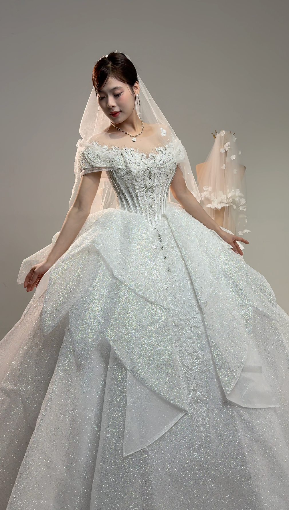 ✨ Glitter tulle skirt featuring varied shapes and layers that look like they’re gently opening, adding dynamic movement and visual interest