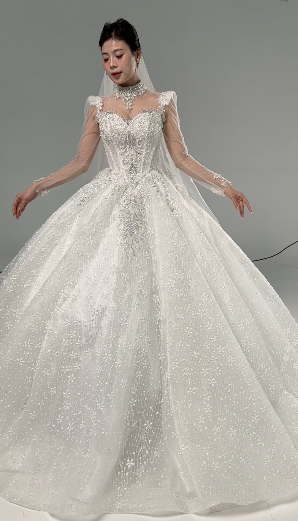 β¨ Intricate beading decorates the bodice for a radiant touch