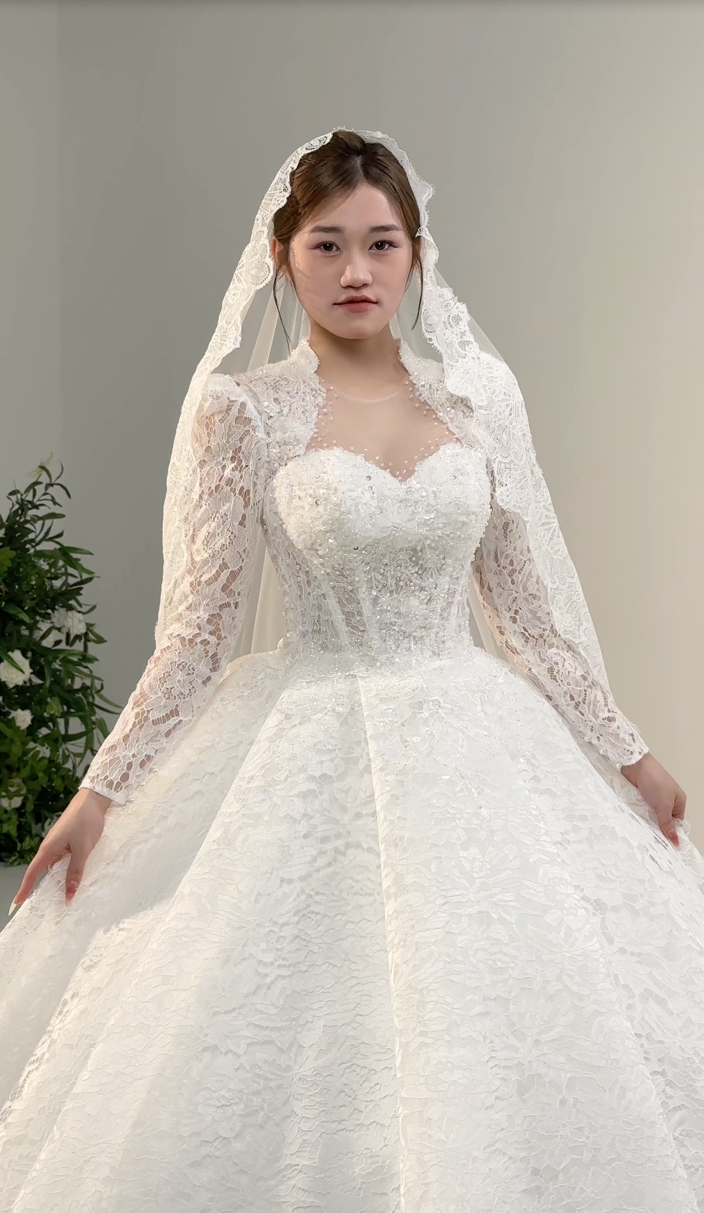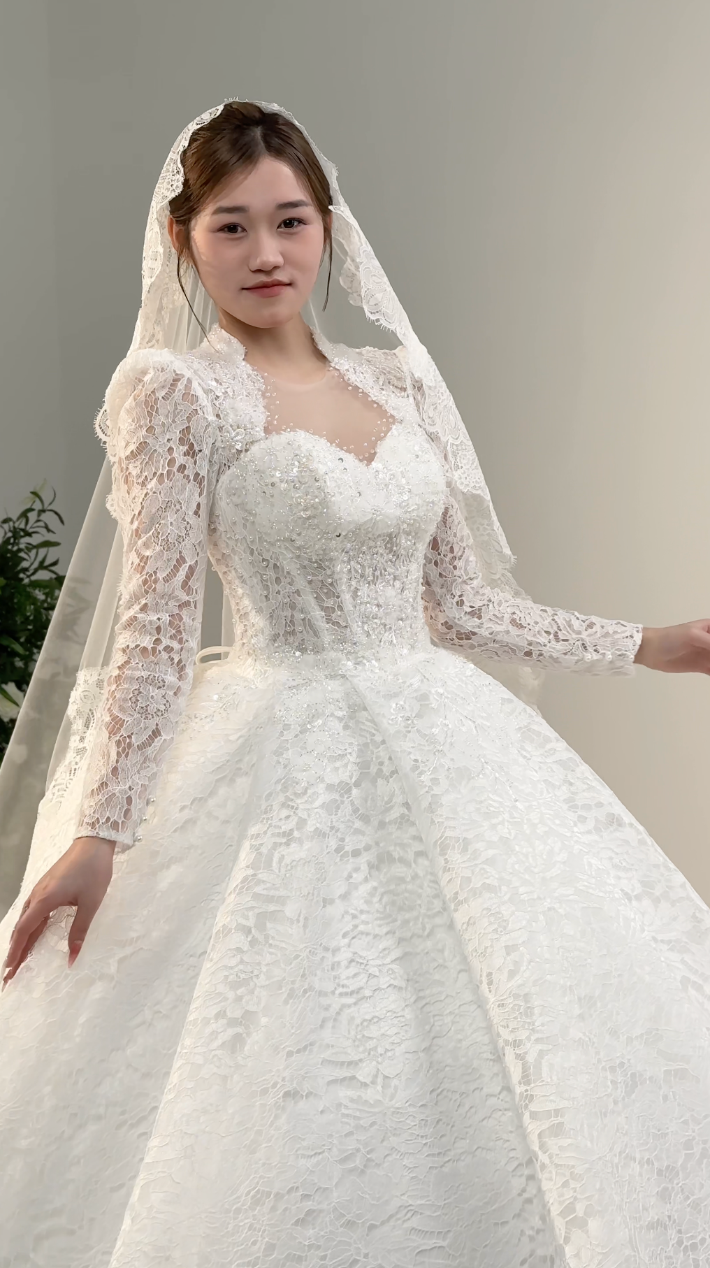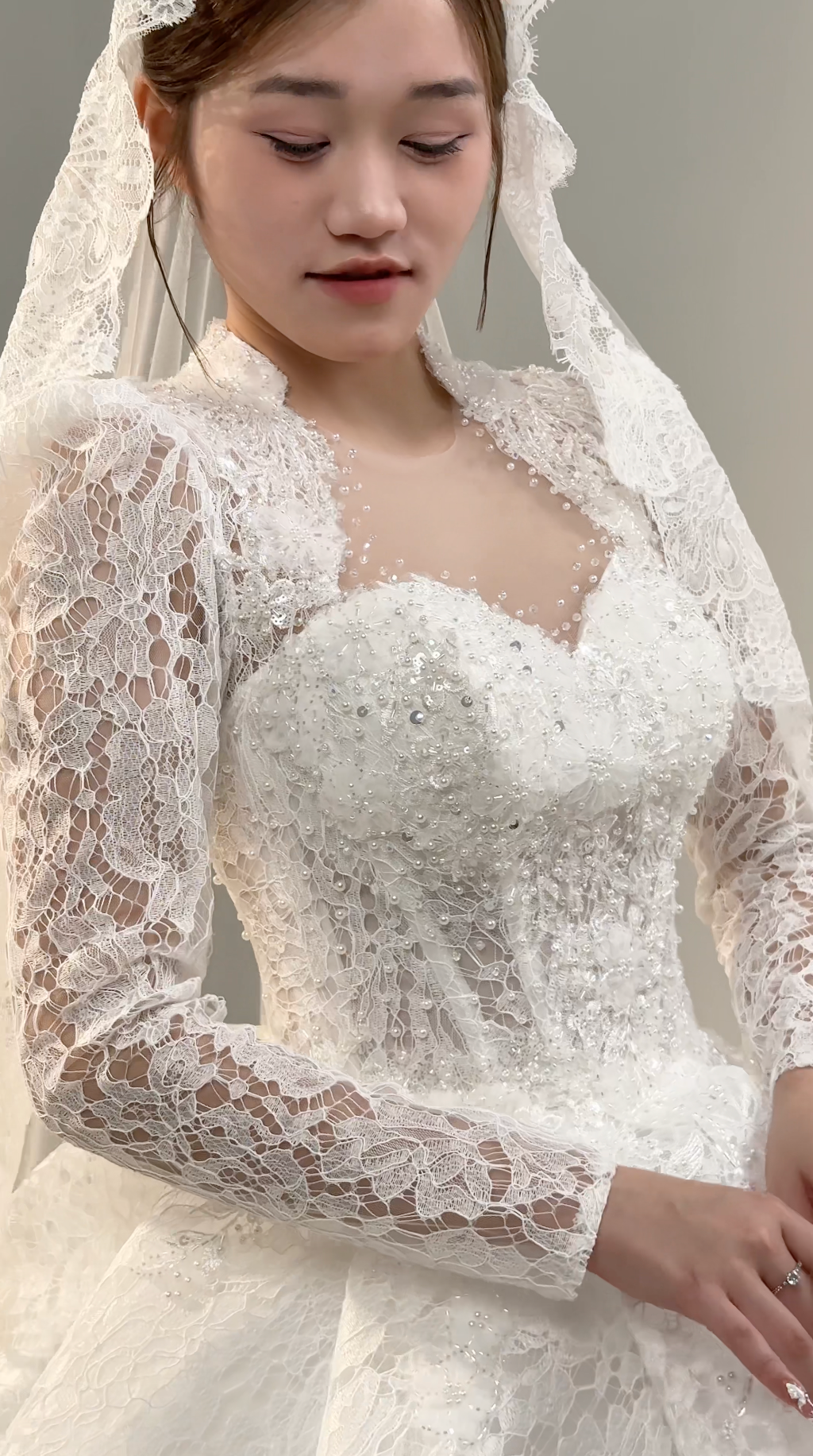 πΈ Long lace sleeves add timeless charm and delicate detail