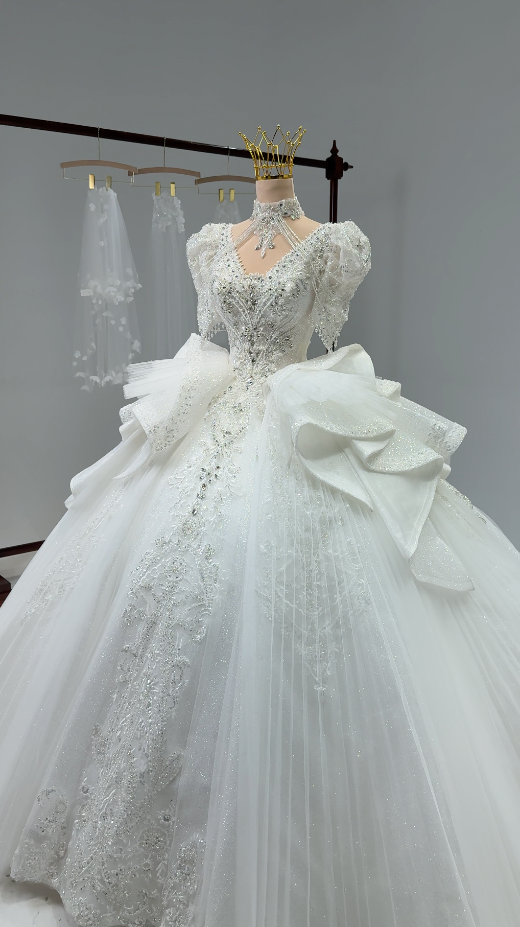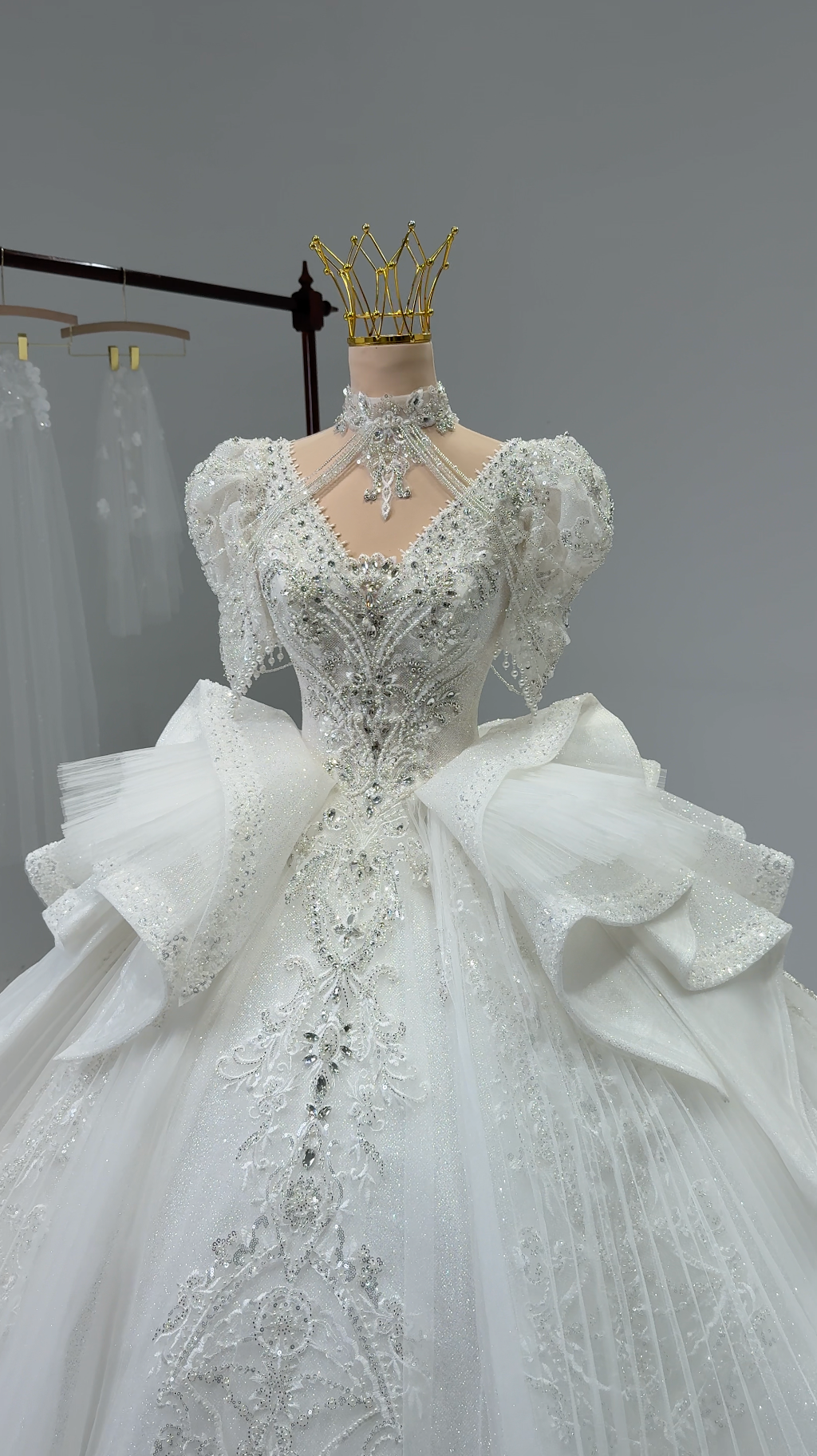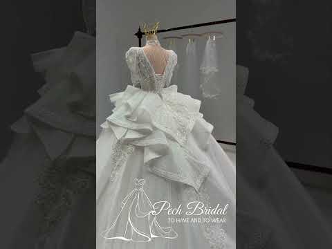 π Dense embellishments throughout the bodice and sleeves add sparkle and texture