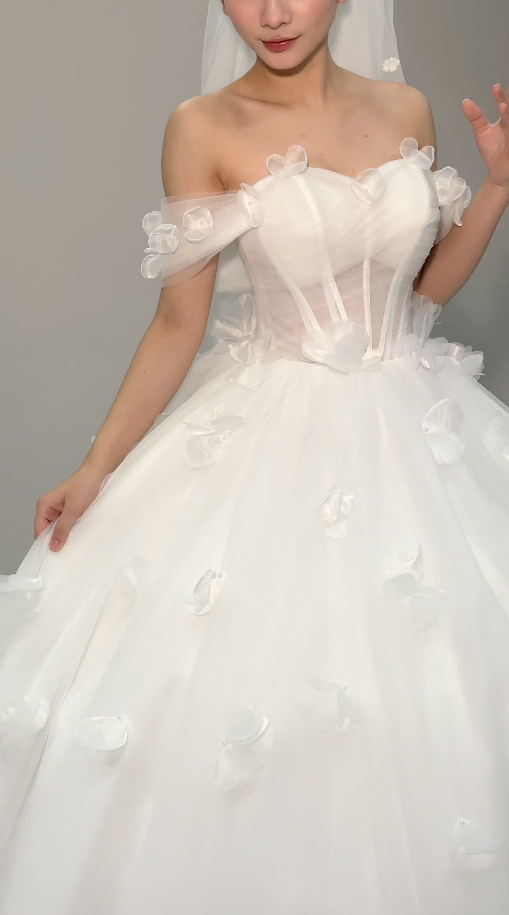 🌫️ Soft tulle draping gracefully around the waist, adding gentle texture and flow