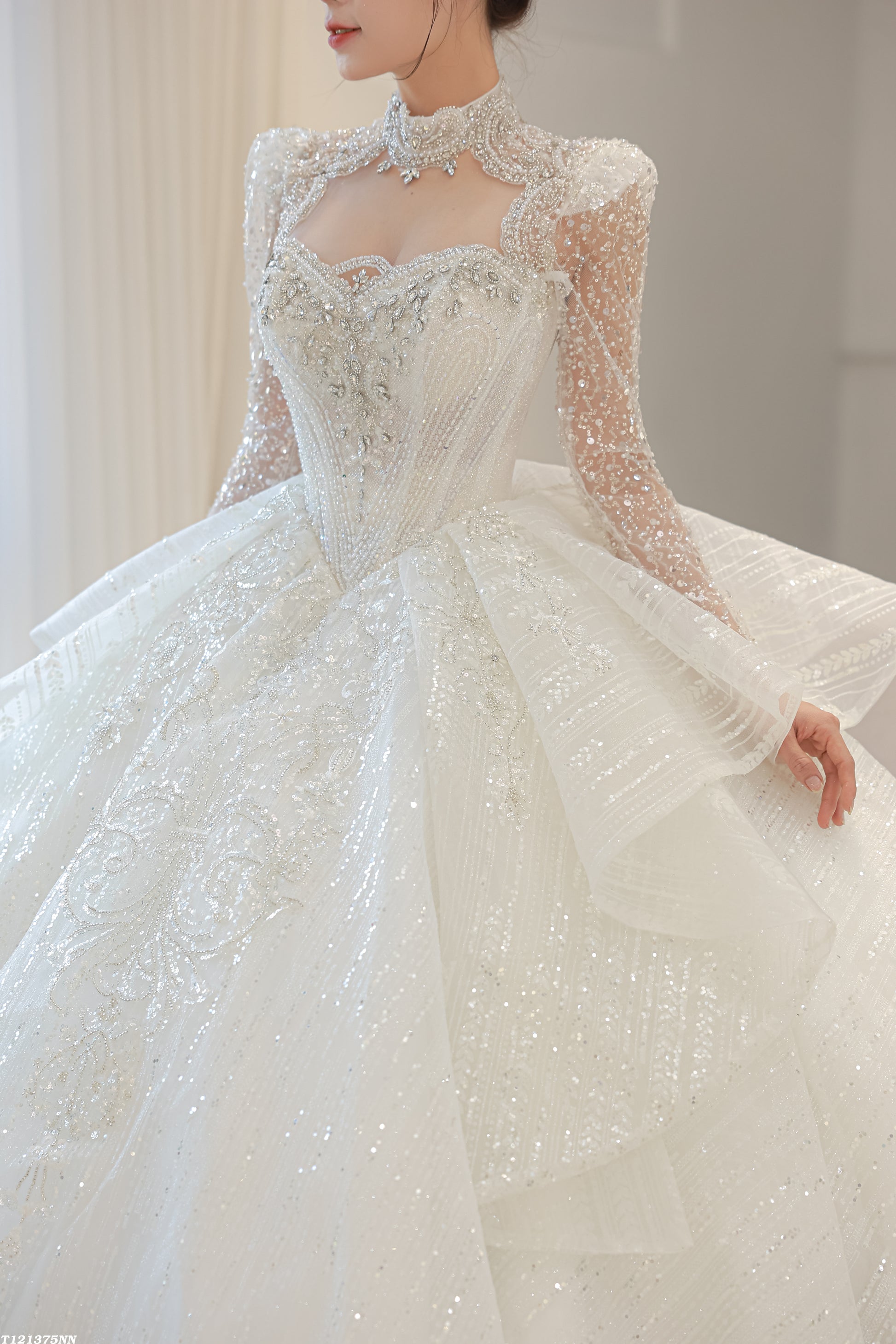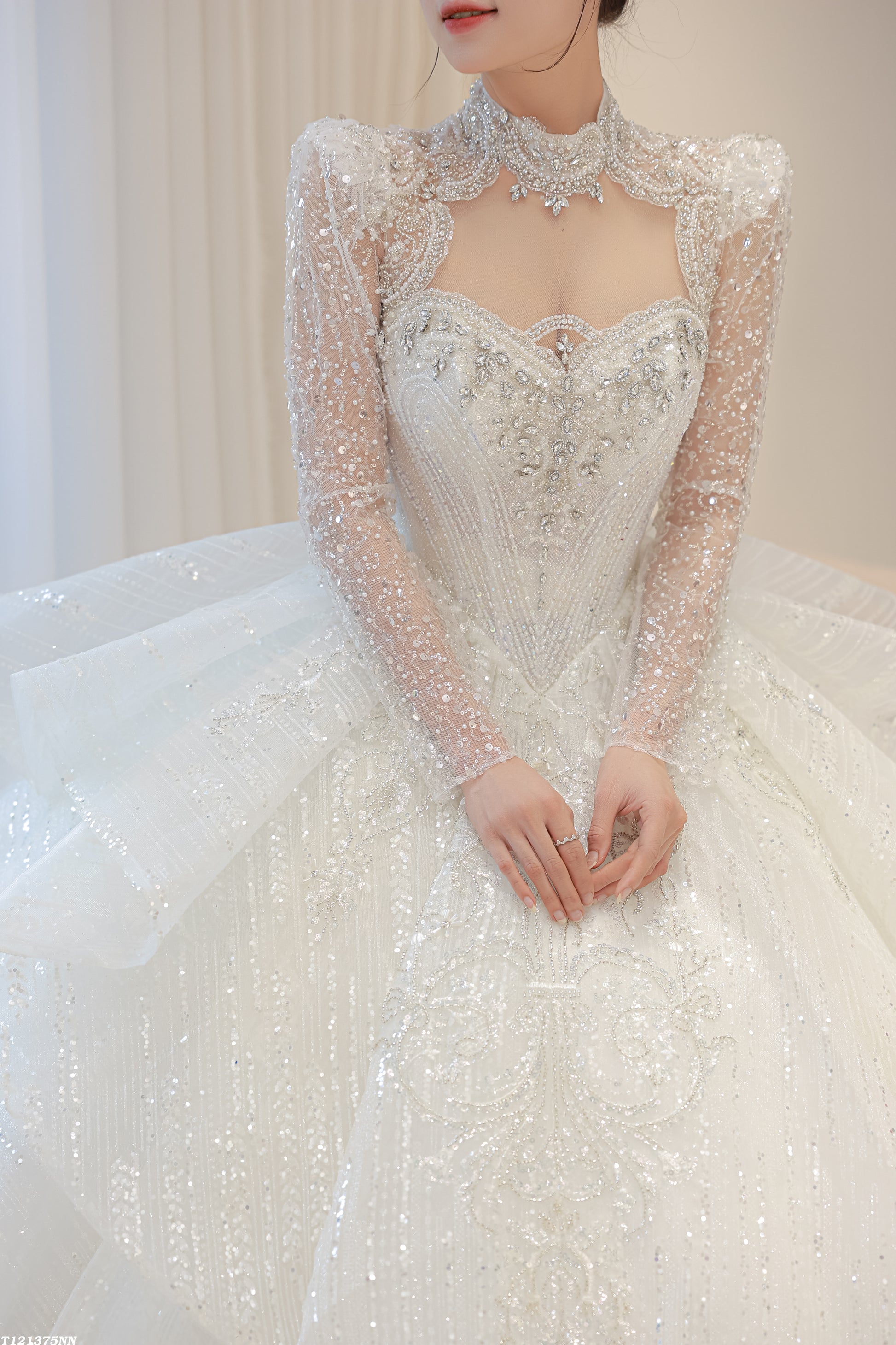 π Heavy beadwork and detailed embellishments across bodice and arms