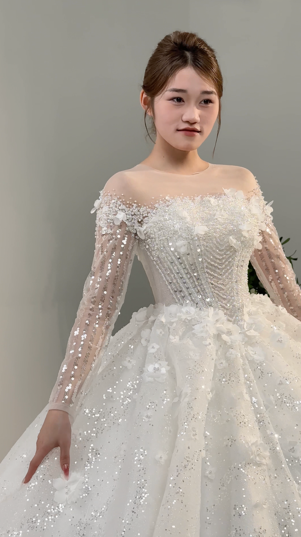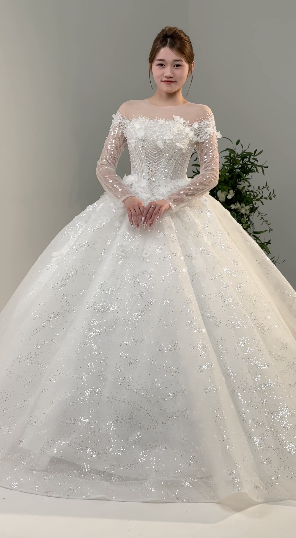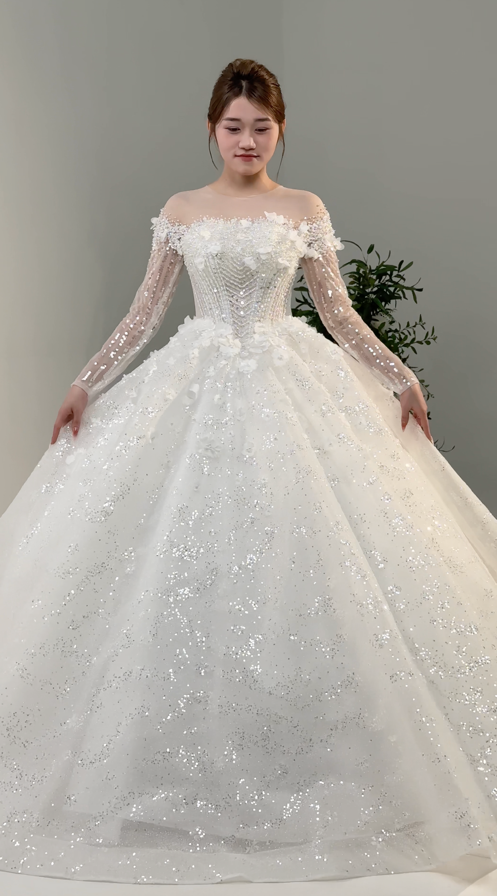 β¨ Long sleeves adorned with glitter for a dazzling effect